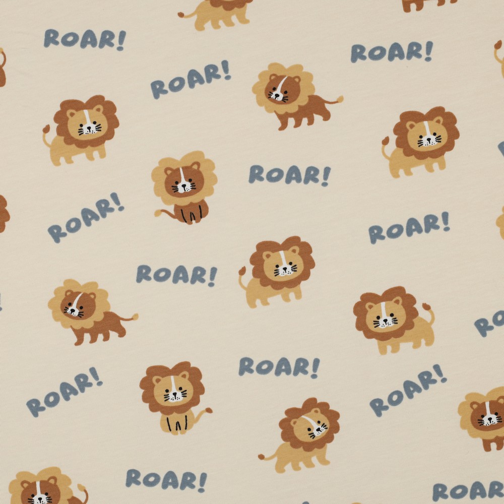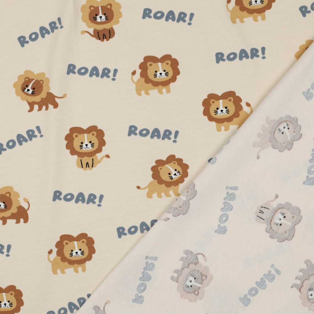 Um tecido para te apaixonares: Pequenas cabeças de leão desenhadas com amor, com rostos meigos e pormenores finos, num fundo bege suave. Os tons naturais delicados e quentes tornam o design maravilhosamente harmonioso e versátil para combinar - perfeito para peças favoritas intemporais mas especiais.