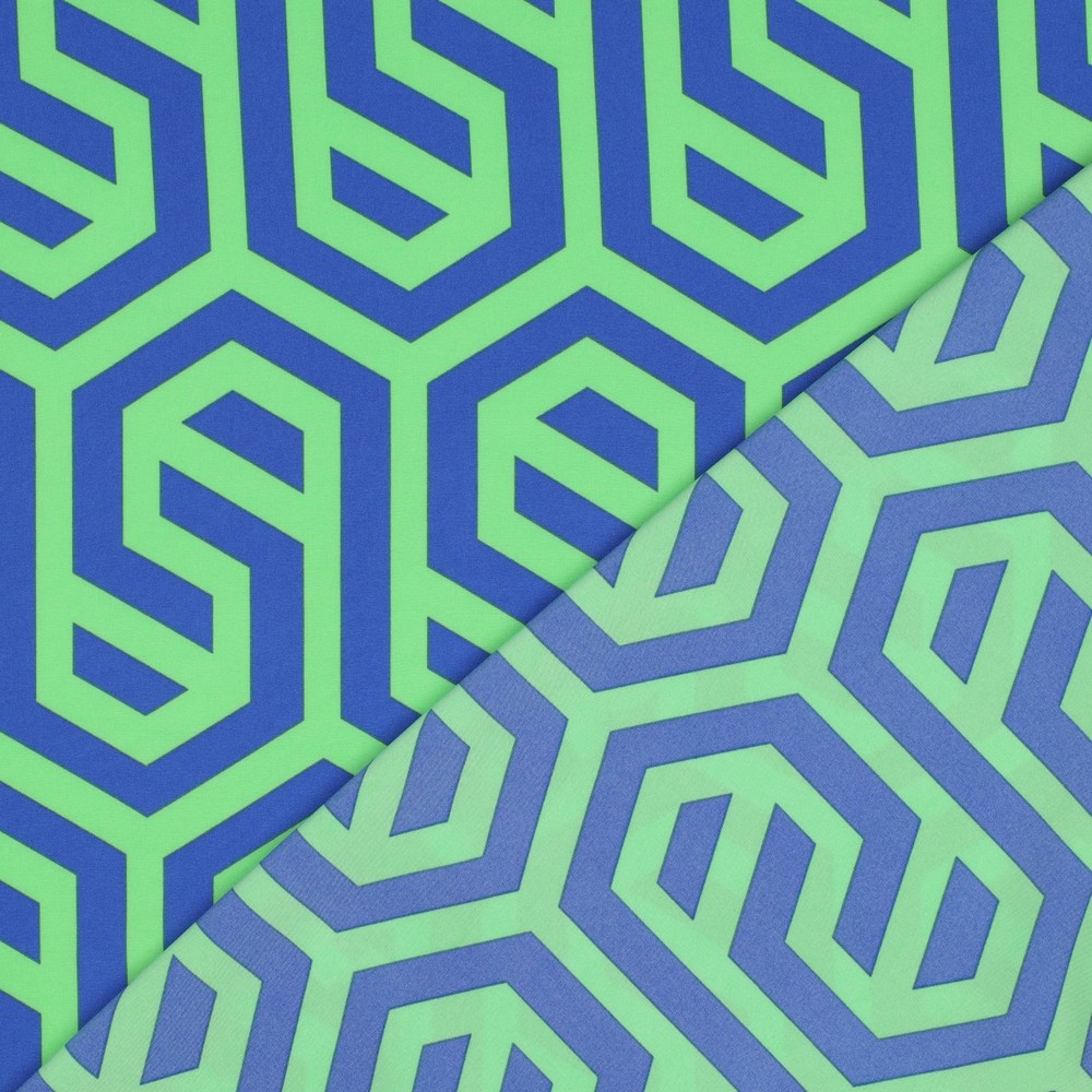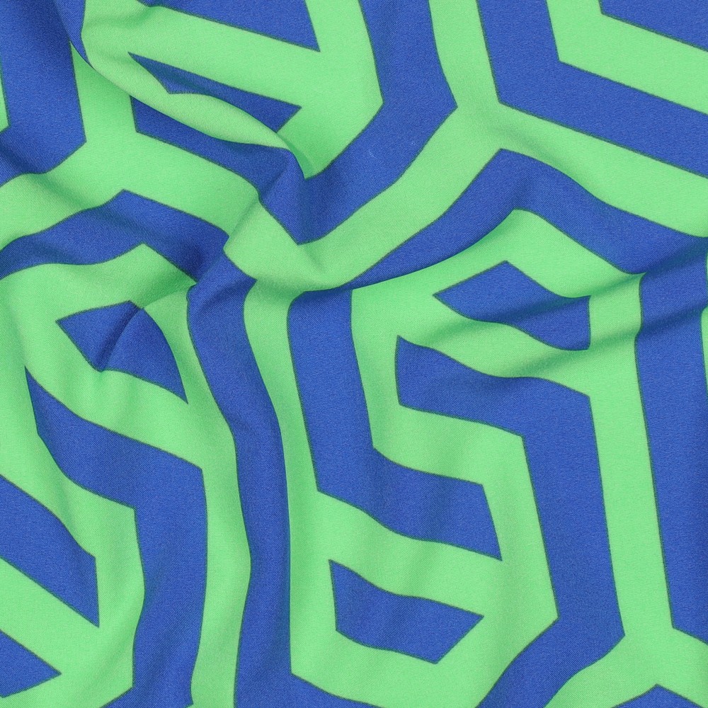 Tecido para blusas e vestidos - Stretch Labirinto Azul Verde