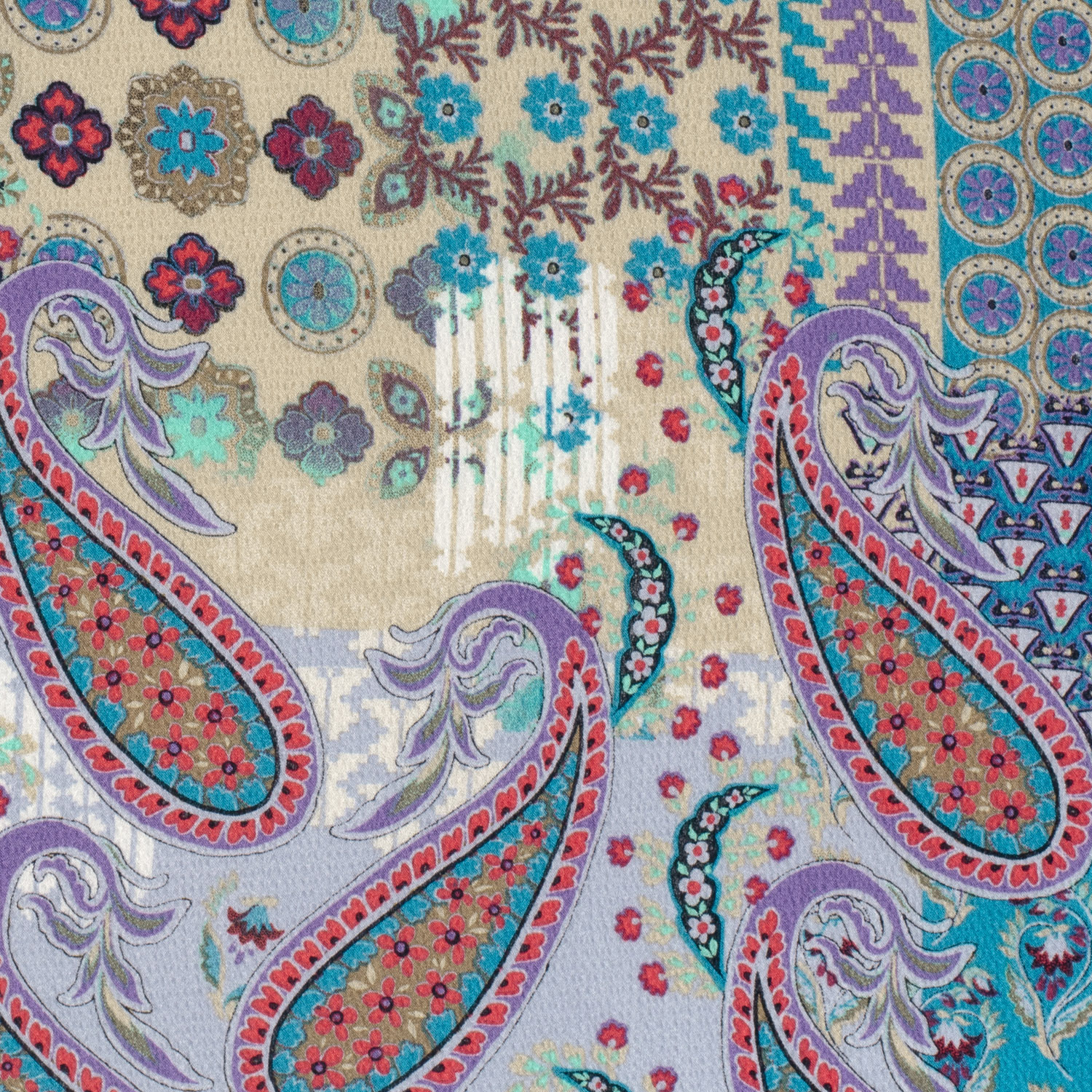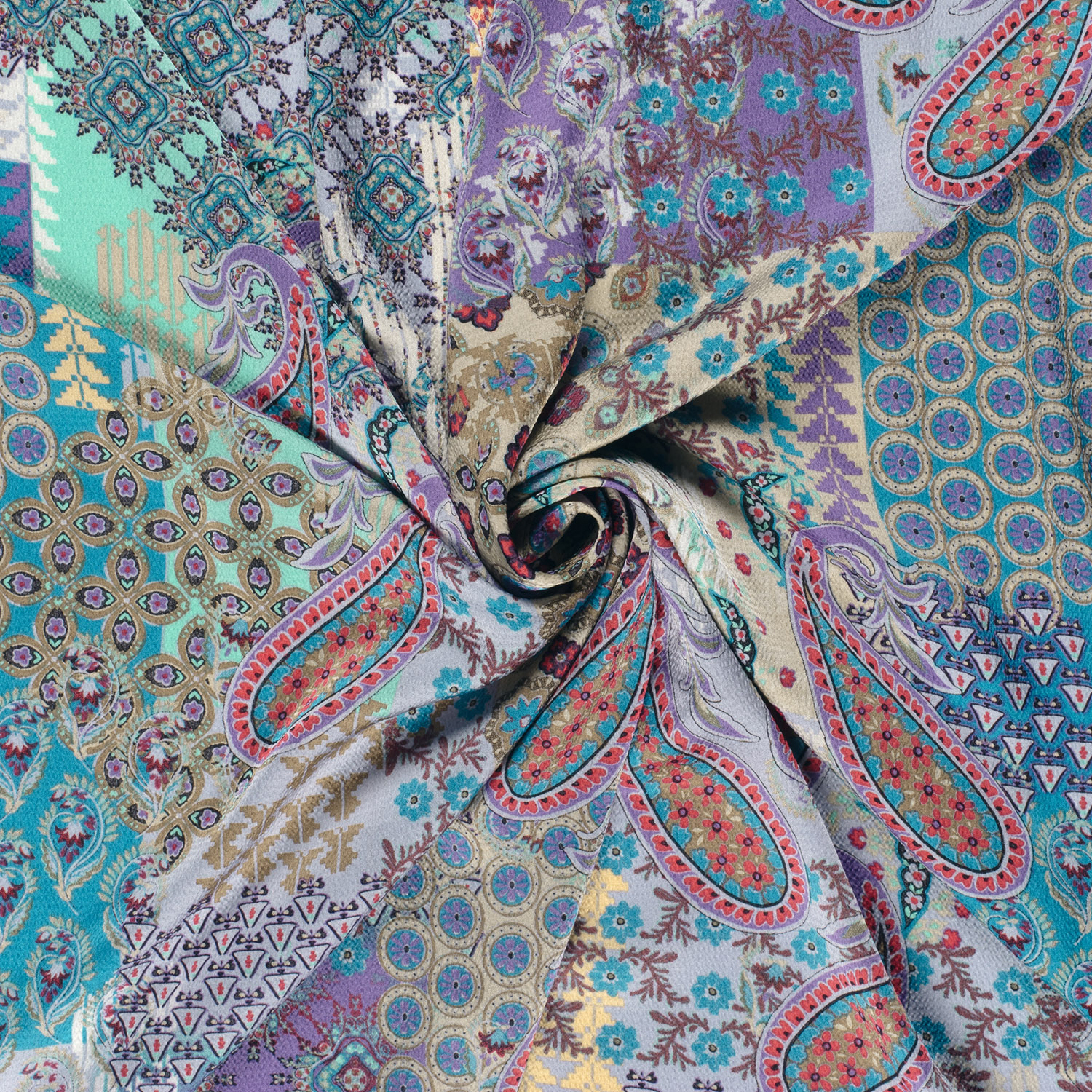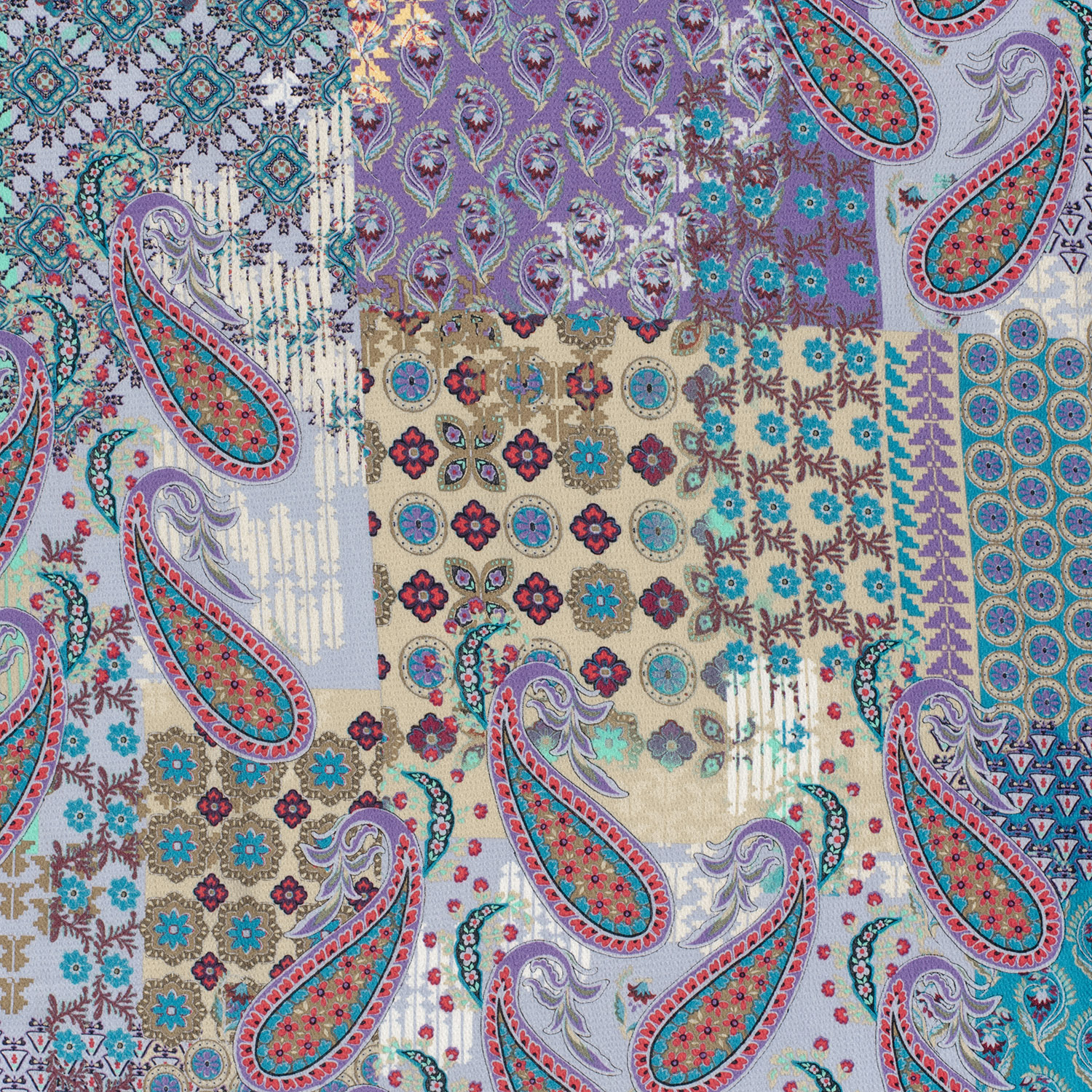 Um toque de luxo para os seus projetos de costura: Este cetim elegantemente brilhante encanta com um design paisley divertido em cores frescas e vibrantes. Sobre um fundo turquesa intenso, bolhas coloridas e elementos paisley ondulados em rosa, amarelo, laranja, lilás e azul dançam como um fogo de artifício colorido no tecido.