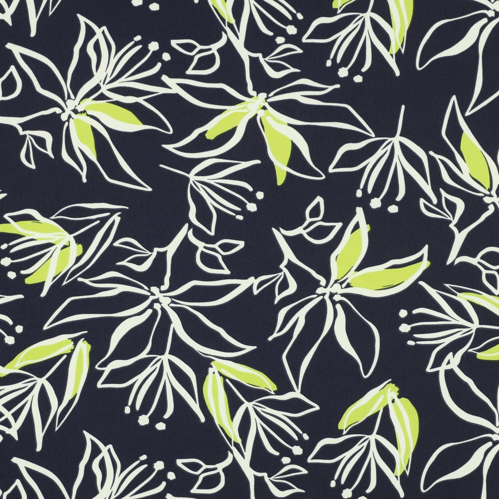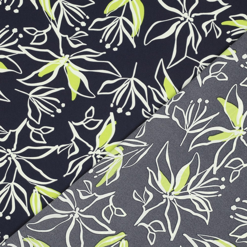 Tecido da blusa e do vestido - tecido floral elástico azul-marinho