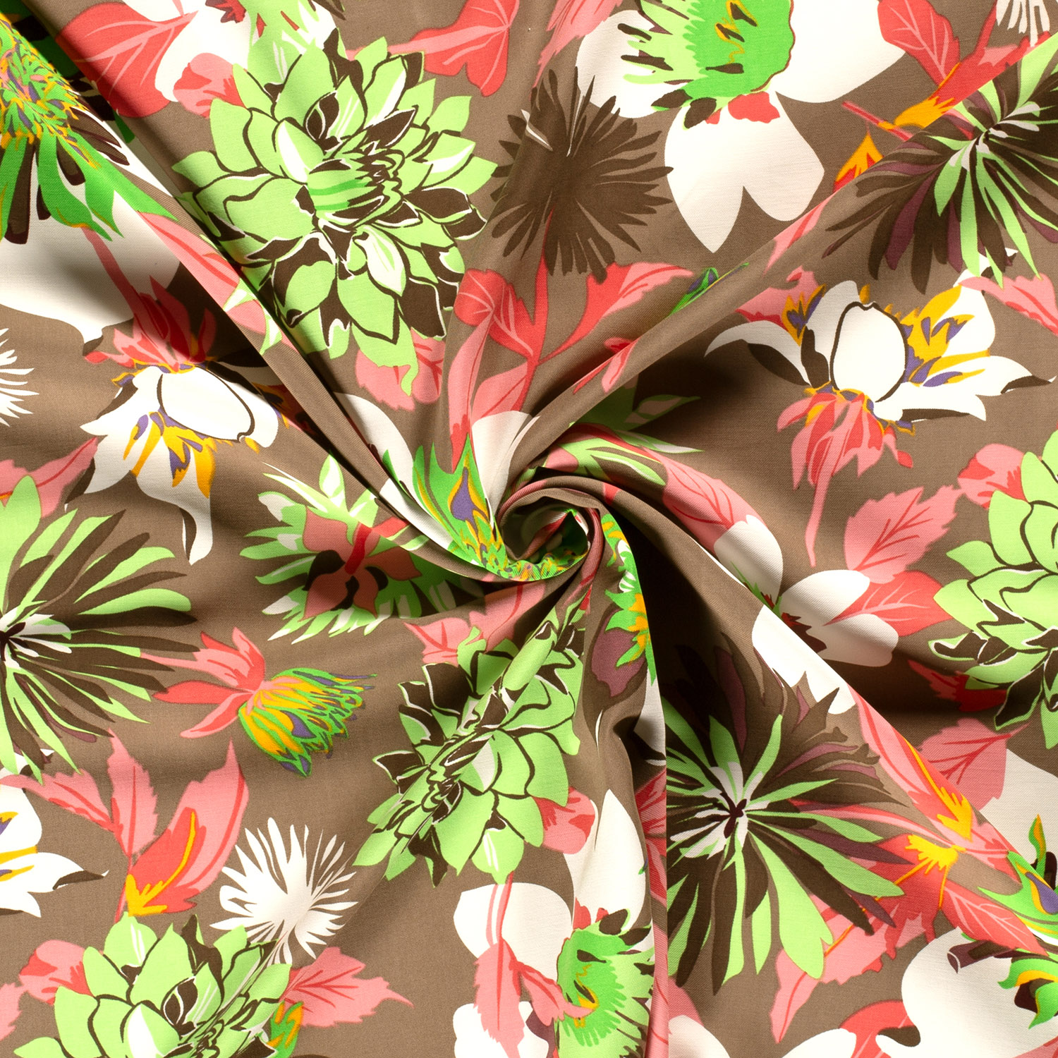 Delicado, fluido e maravilhosamente romântico: este twill de viscose stone washed encanta com um padrão floral elegante em taupe nobre. A aparência suavemente lavada confere ao tecido um toque casual e ligeiramente vintage, enquanto as flores finas em tons naturais e harmoniosamente combinados proporcionam um visual feminino.
