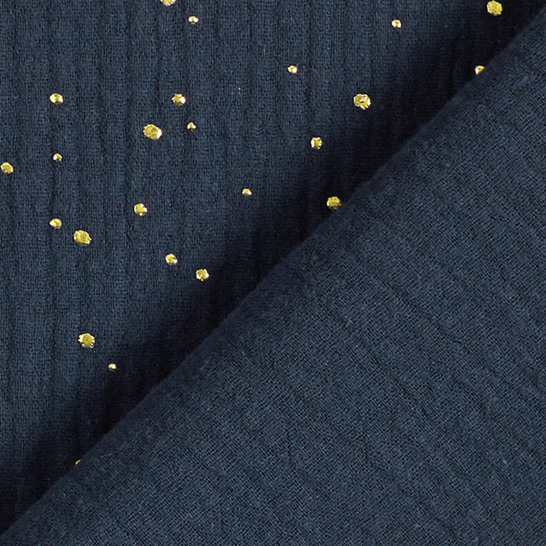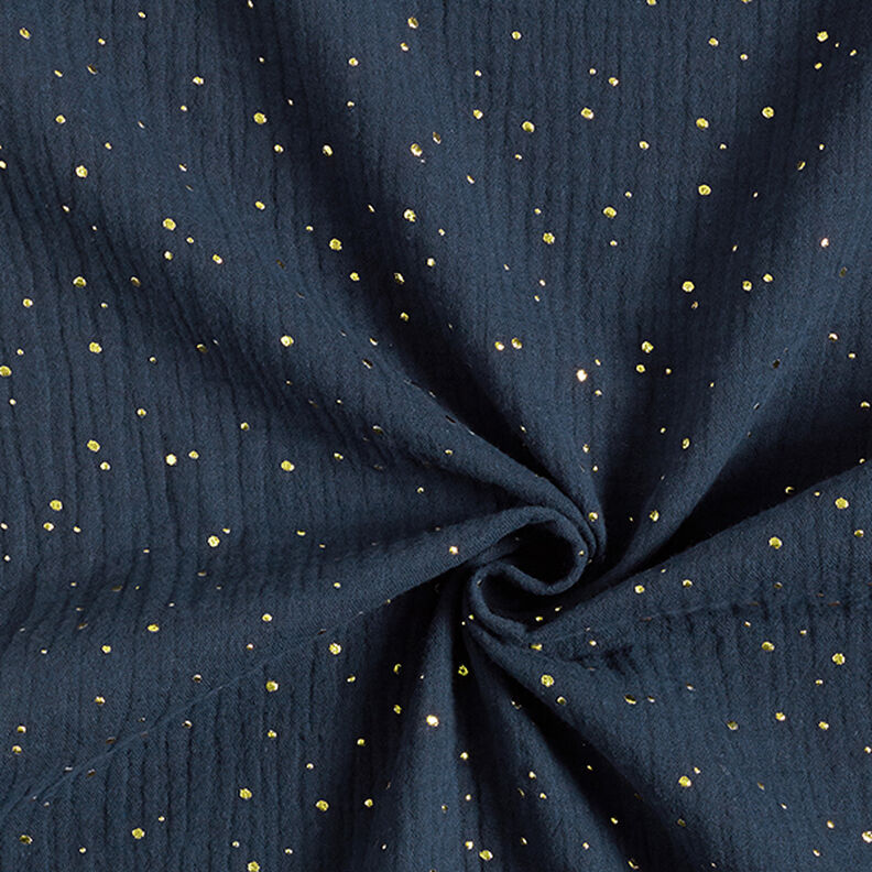 Algodão Musselina Sarapintas douradas espalhadas – azul-marinho/dourado