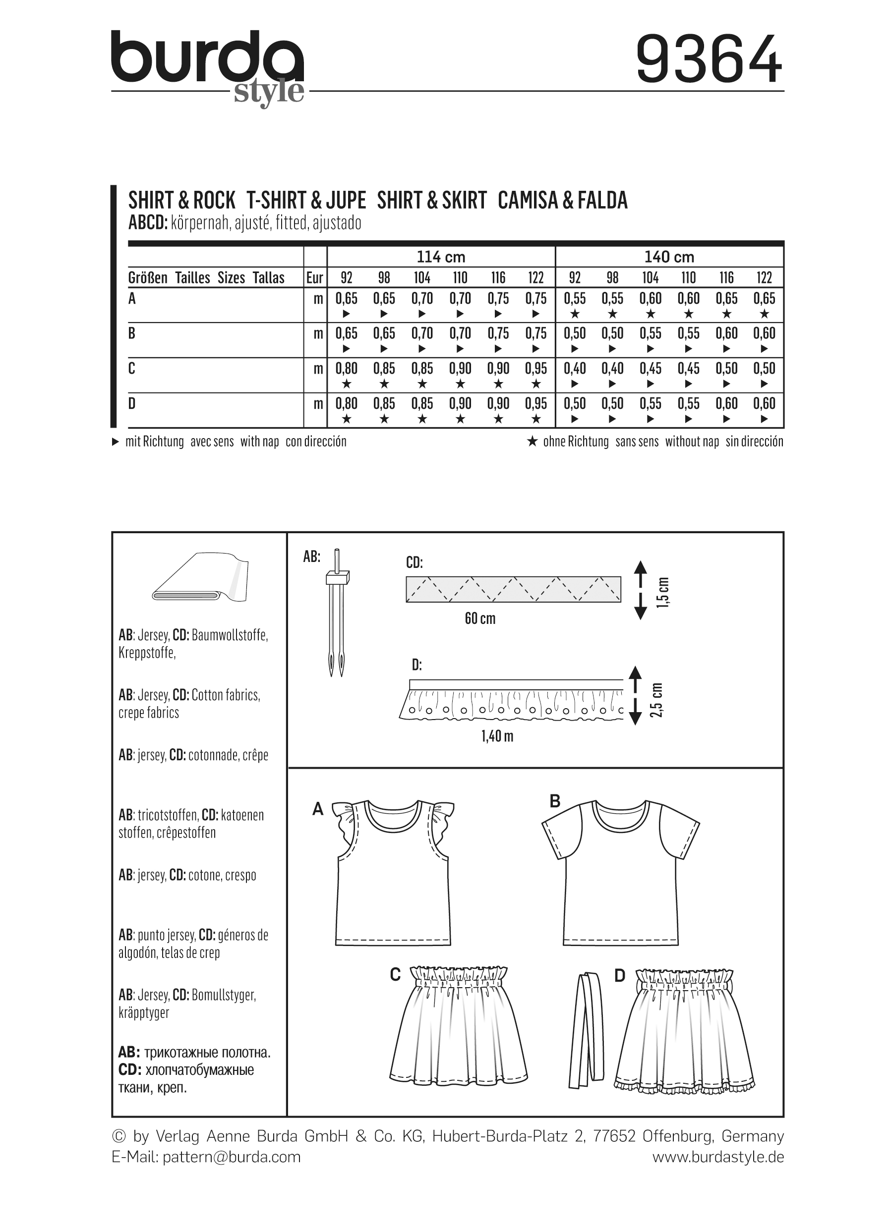 Camisa de criança / Saia, Burda 9364