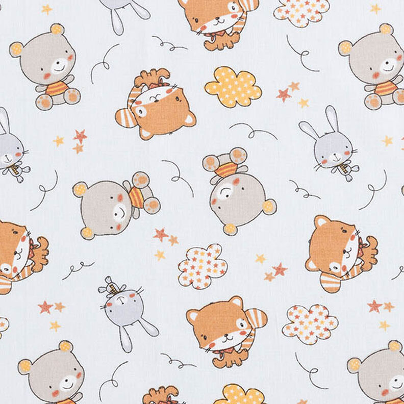 Cretone Coelhinhos e ursos – cinzento-névoa
