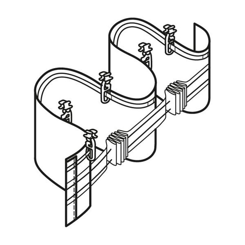 Fita ondulada para cortinas com ondas uniformes, com uma fileira de aselhas e passagem para o varão