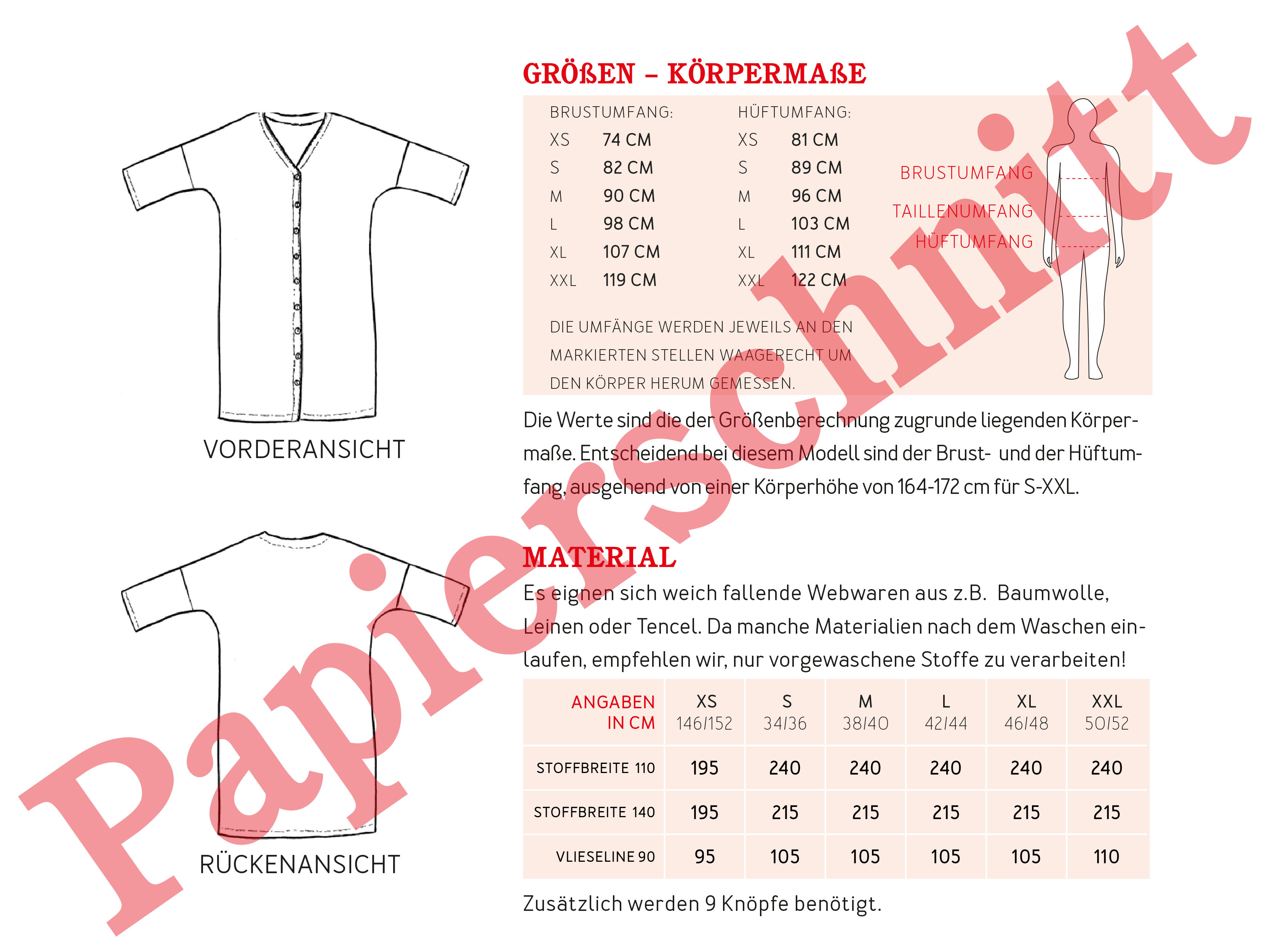 FRAU EDDA Vestido blusa, corte direito, com fila de botões e bolsos | Studio Schnittreif | XS-XXL
