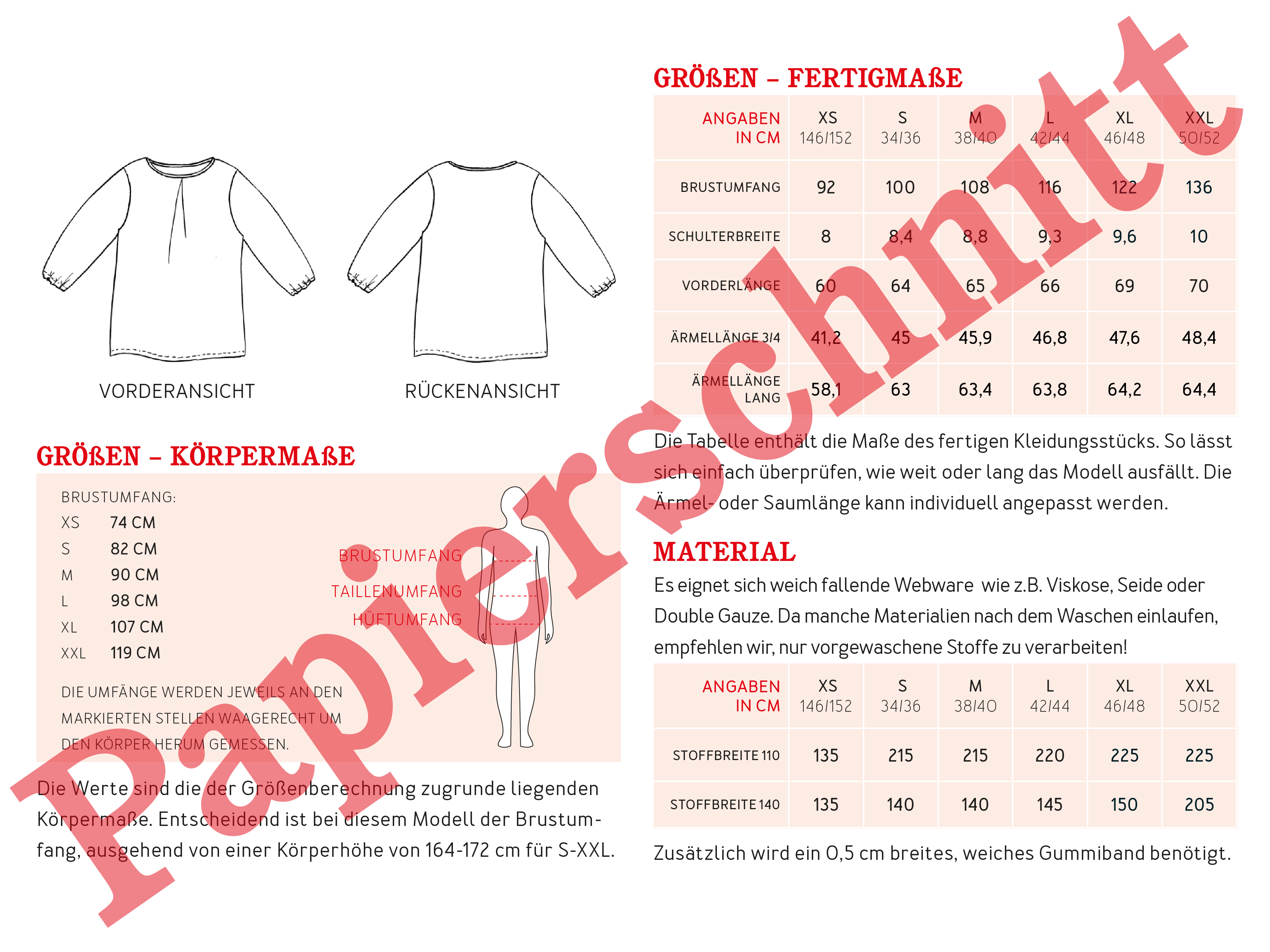 FRAU SUKI - Blusa slip-on com pregas invertidas, Studio Schnittreif | XS - XXL