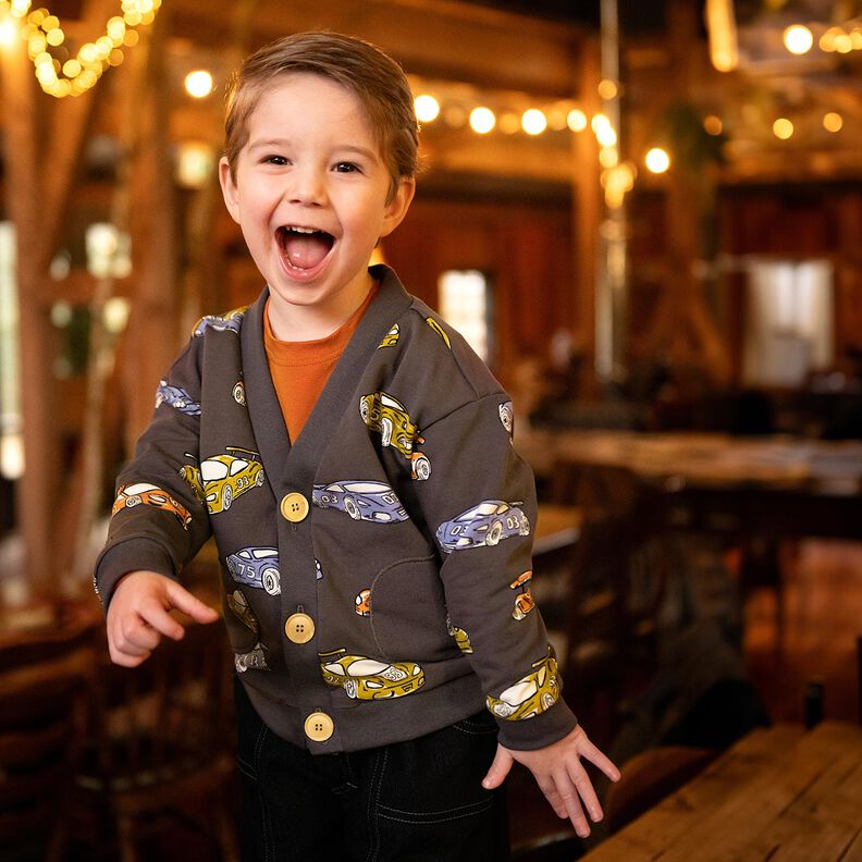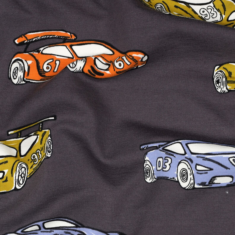 French Terry Sweat de verão Carros de corrida | Poppy Fabrics – cinzento