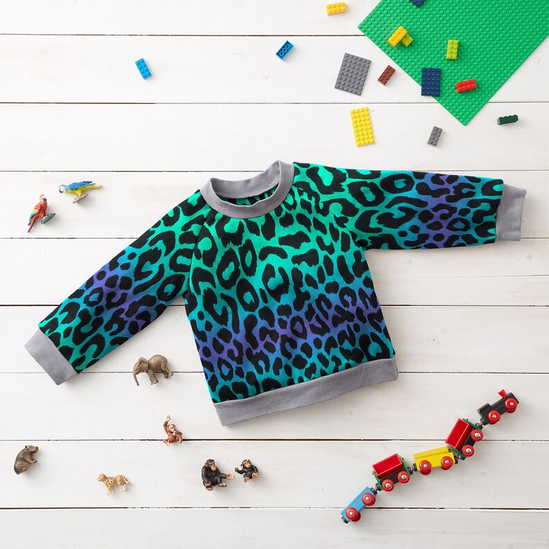 French Terry Sweat de verão Leopardo com gradação de cor Impressão Digital – azul violeta/turquesa
