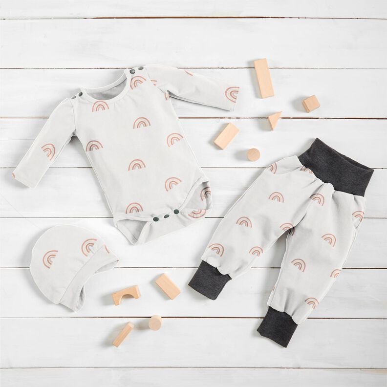 GOTS Jersey de algodão Arco-íris suaves Impressão Digital – marfim