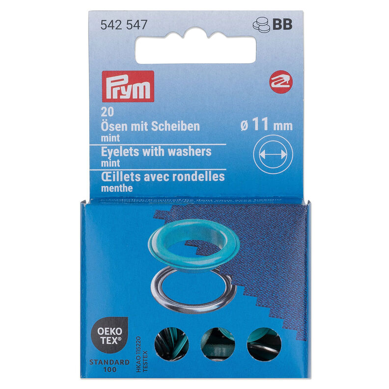 Ilhós com anilhas [20 peças | Ø 11 mm] | Prym – menta/prata metálica