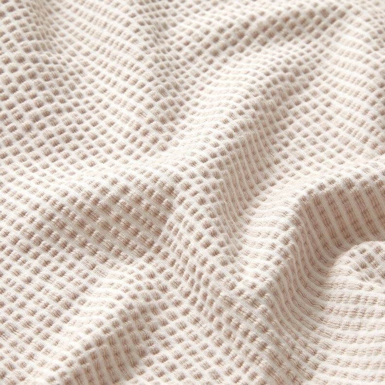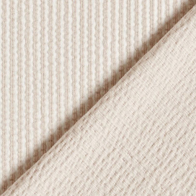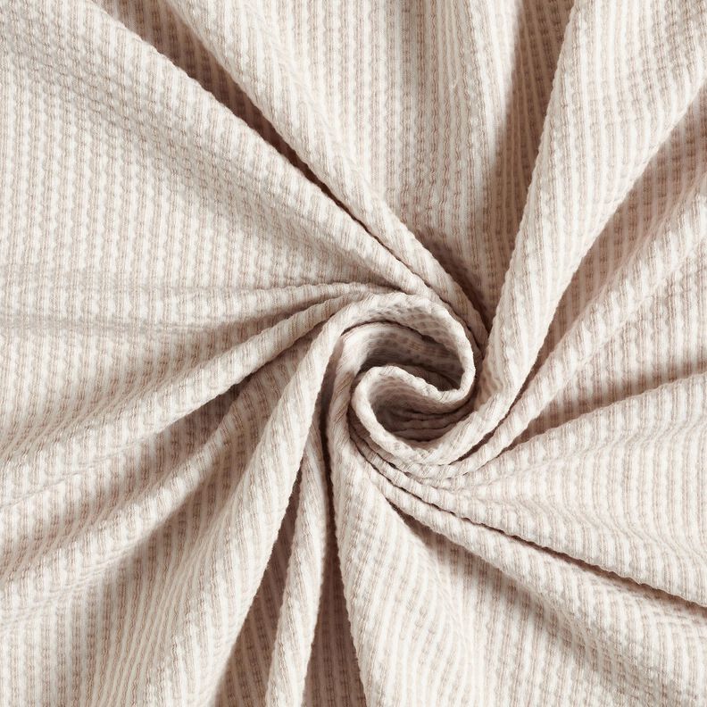 Jersey de algodão Anarruga Riscas finas – amêndoa/branco