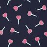 Jersey de algodão Chupa-chupas de coração com brilho | Poppy Fabrics – azul-noite