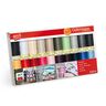 Com este kit muito prático, obtém um stock de fios nas cores básicas mais comummente usadas. Seja manualmente ou com a máquina de costura, seja seda, linho, viscose, tecidos mistos, algodão ou pele, com este kit tem sempre o fio ideal à mão.