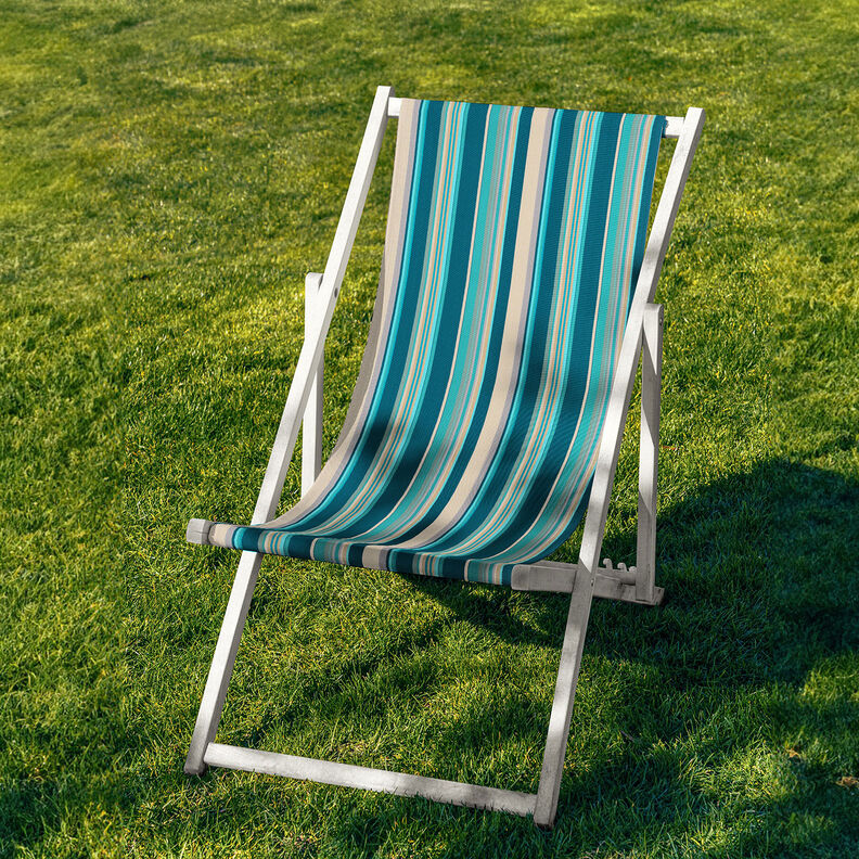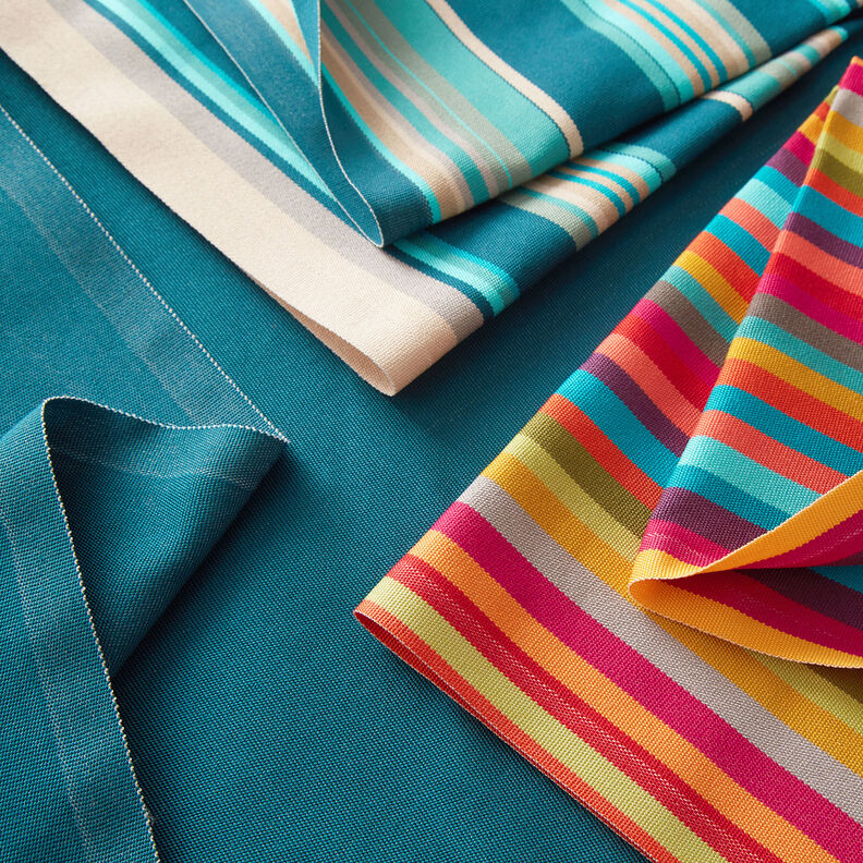 Com uma largura de 44 cm, este tecido para exteriores foi especialmente concebido para espreguiçadeiras. É resistente à luz, impermeável e robusto, sendo, por isso, perfeito para ser usado em estofos para mobiliário de jardim.