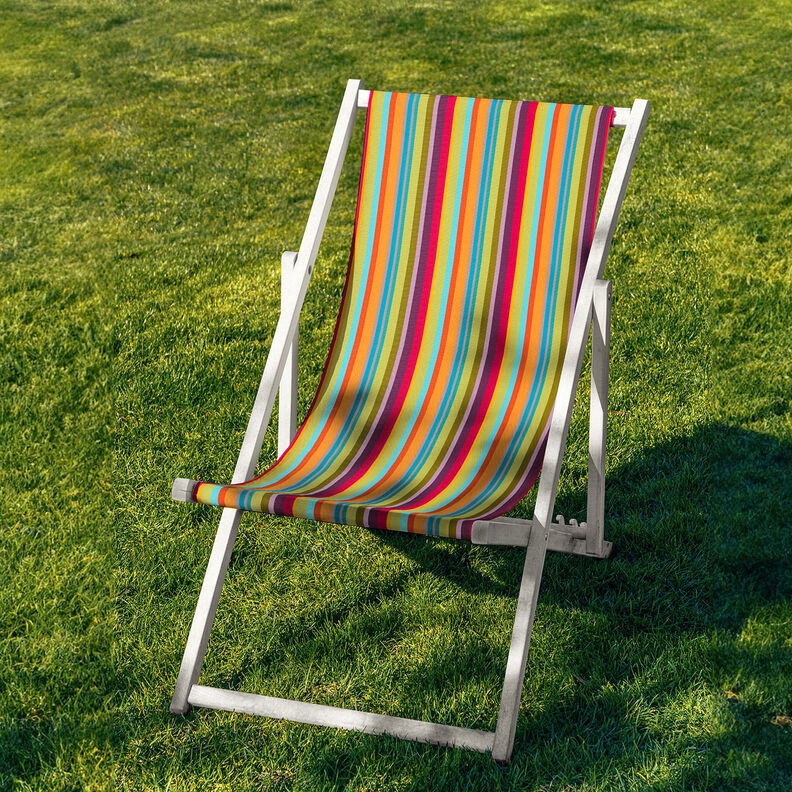 Com uma largura de 44 cm, este tecido para exteriores foi especialmente concebido para espreguiçadeiras. É resistente à luz, impermeável e robusto, sendo, por isso, perfeito para ser usado em estofos para mobiliário de jardim.