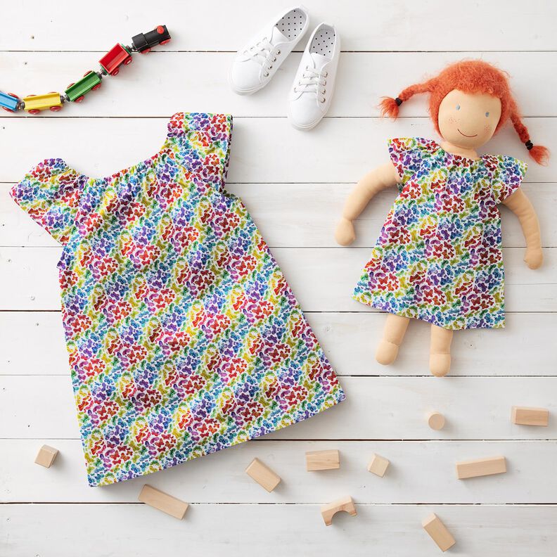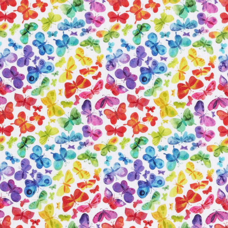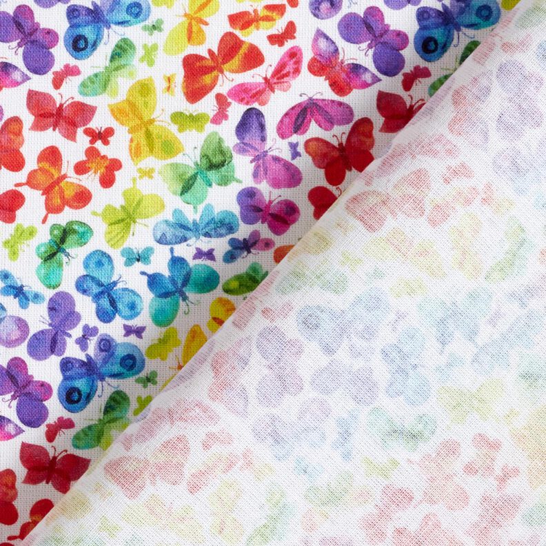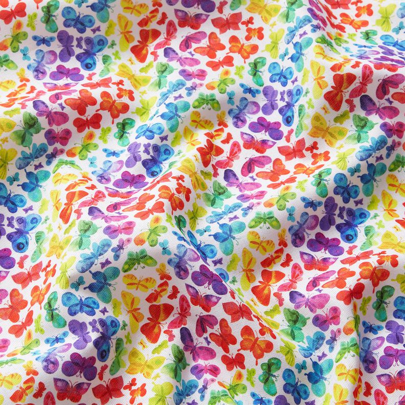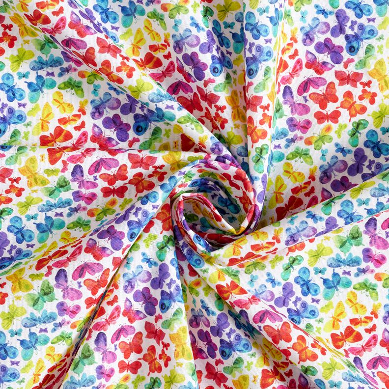 Popelina de algodão Borboletas Arco-íris Impressão Digital – branco/colorido