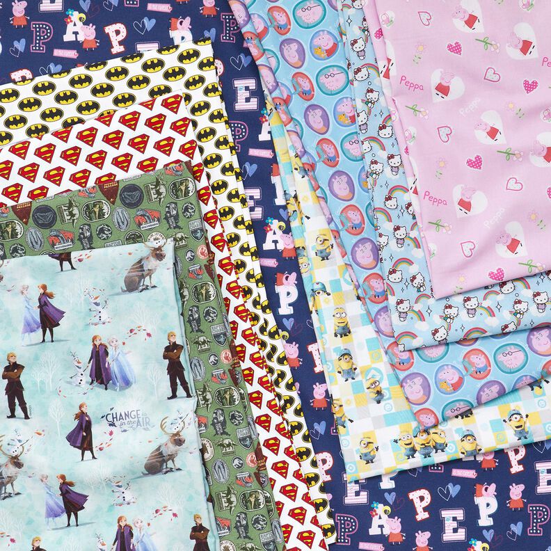 Neste tecido de tecelagem fina, estão estampados vários desenhos que conhecemos da banda desenhada e dos filmes. Costure com ele uma capa personalizada para o seu livro favorito, utilize-o como forro para bolsos ou revele-se um verdadeiro fã com uma camisa ou blusa.