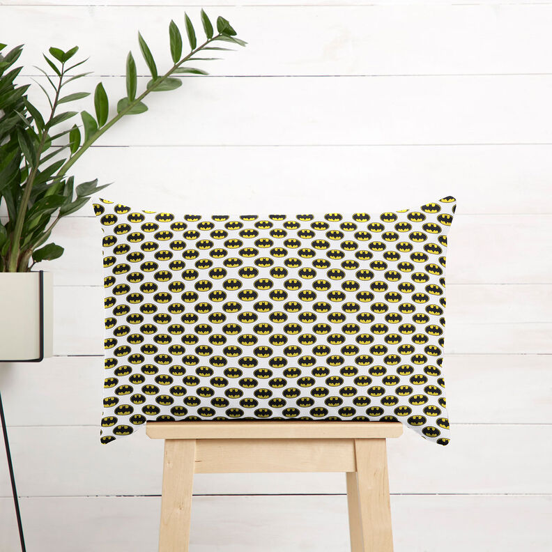 Popelina de algodão Logótipo do Batman Tecido sob licença | DC Comics – branco
