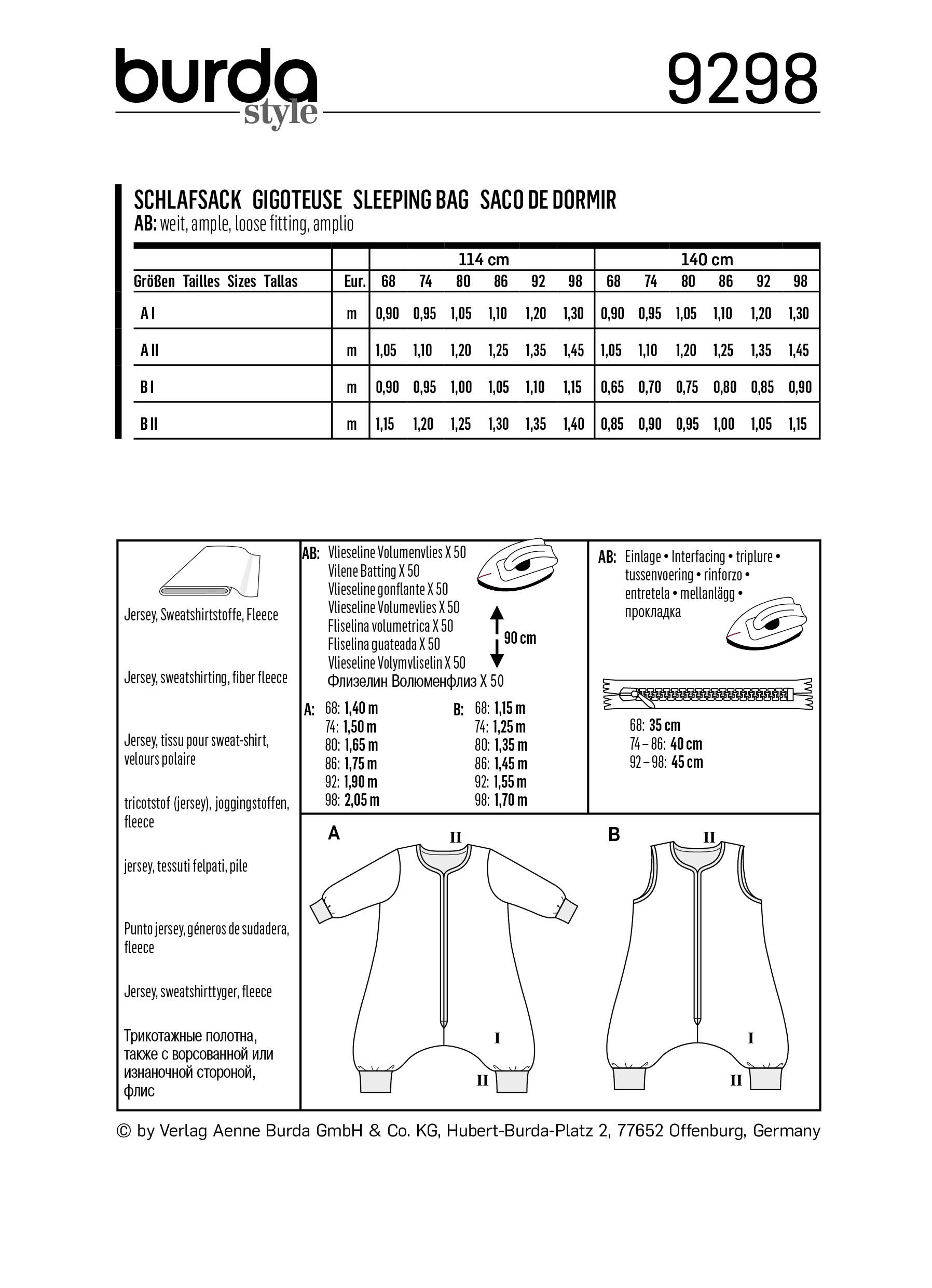 Saco-cama, Burda 9298 | 68 - 98