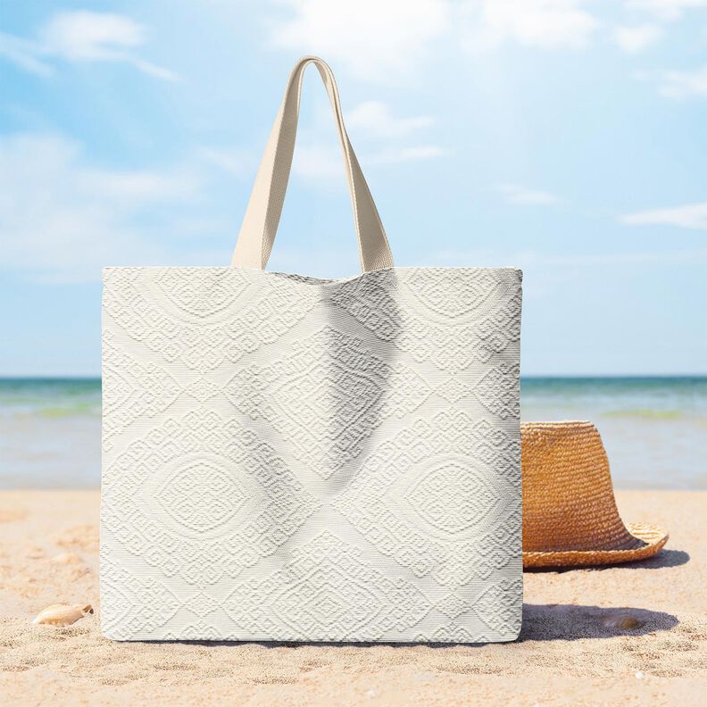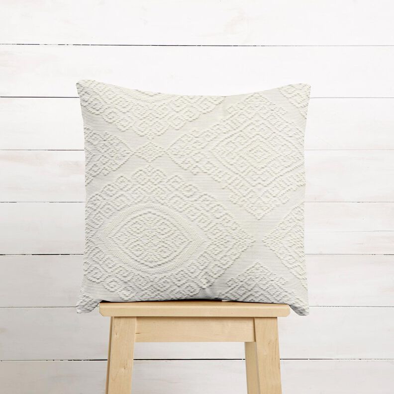 Tecido para decoração Jacquard Losangos decorativos 275 cm – branco sujo