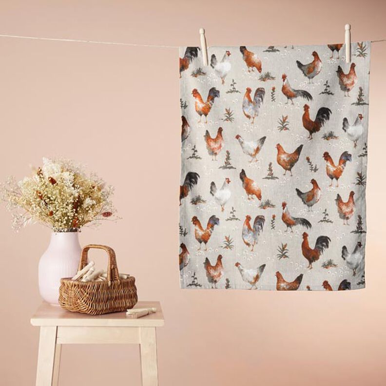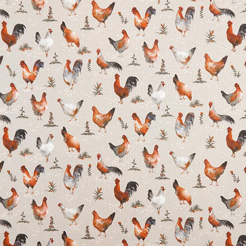 Tecido para decoração Meio linho Panamá Galinhas – natural/terracota