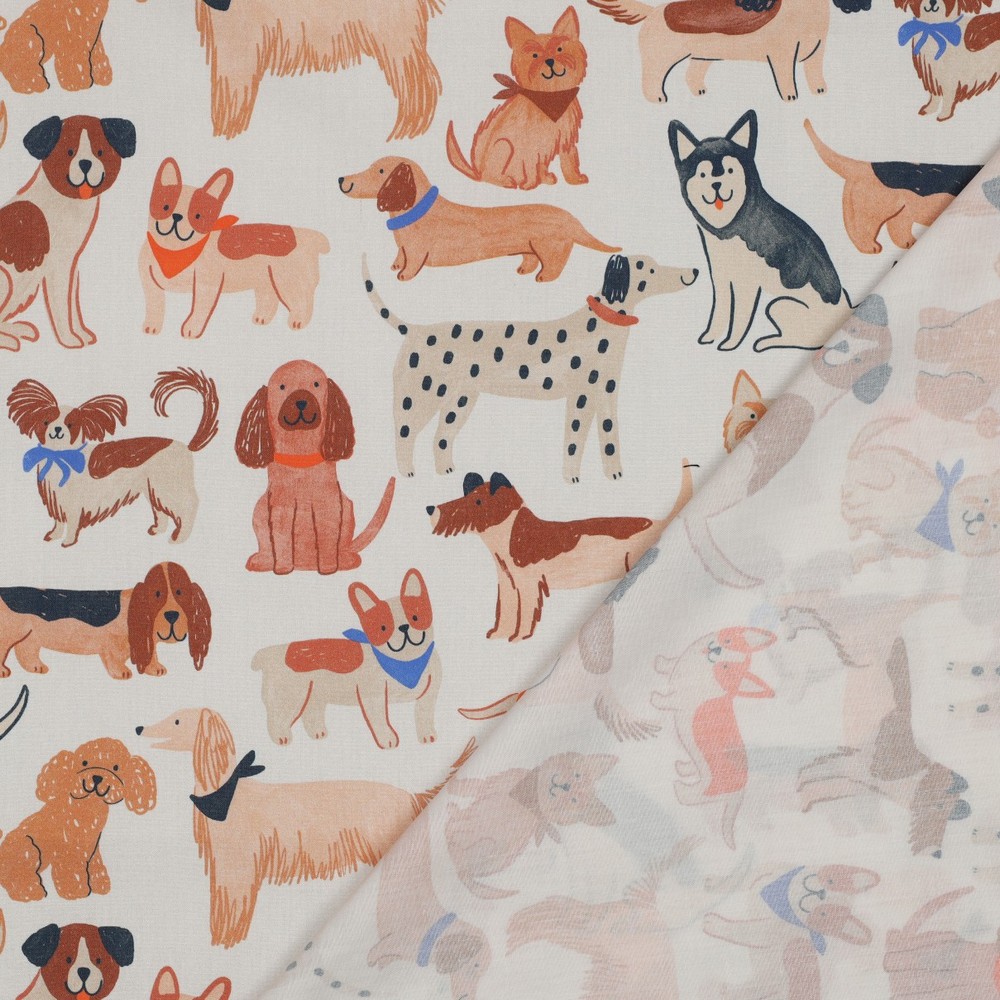 Um tecido para apaixonar-se – perfeito para todos os fãs de cães! Sobre um fundo branco brilhante, desfilam cães ilustrados com carinho em várias raças e posições. Desde o cachorrinho brincalhão ao cão relaxado: os desenhos detalhados parecem saídos diretamente de um livro infantil.