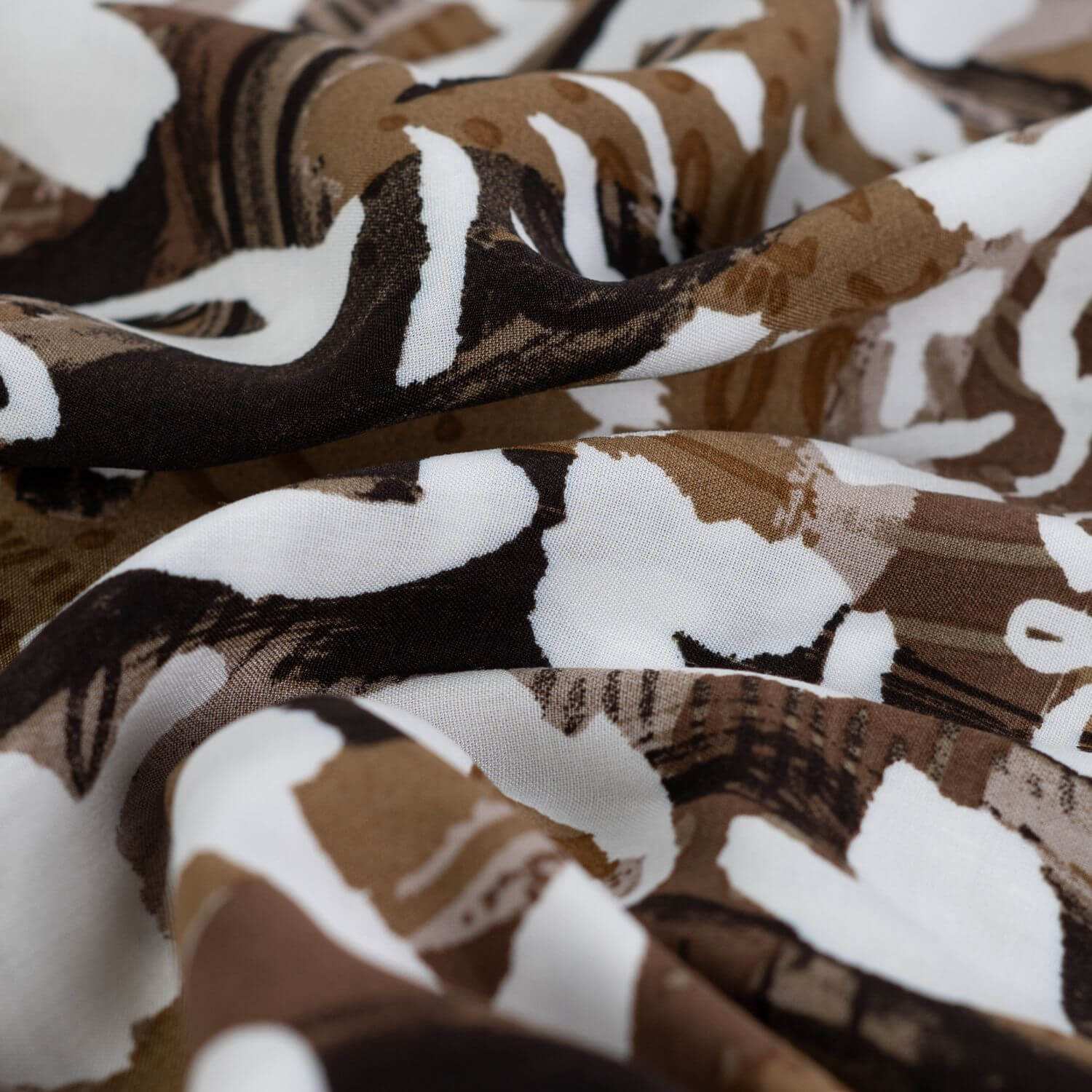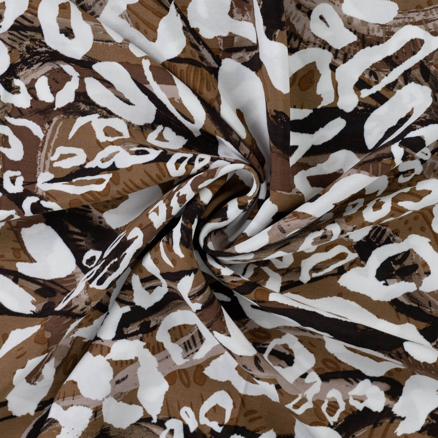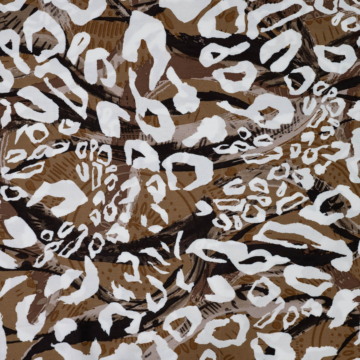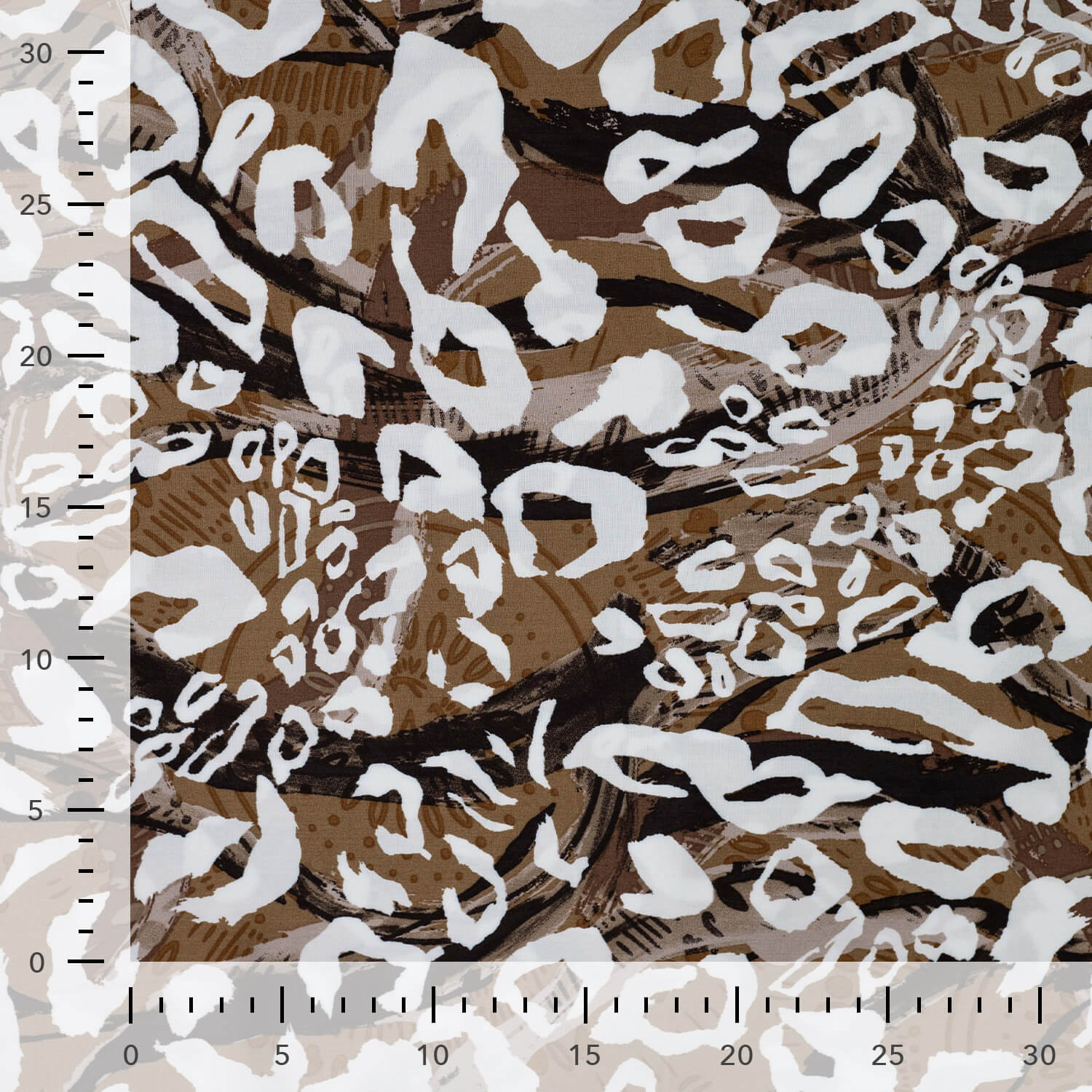 Esta popelina de viscose leve encanta com um estampado de leopardo moderno e abstrato em tons quentes de castanho - do bege suave ao caramelo e ao castanho chocolate profundo. As manchas dispostas irregularmente parecem pinceladas artísticas e dão ao clássico estampado animal um toque elegante e contemporâneo.