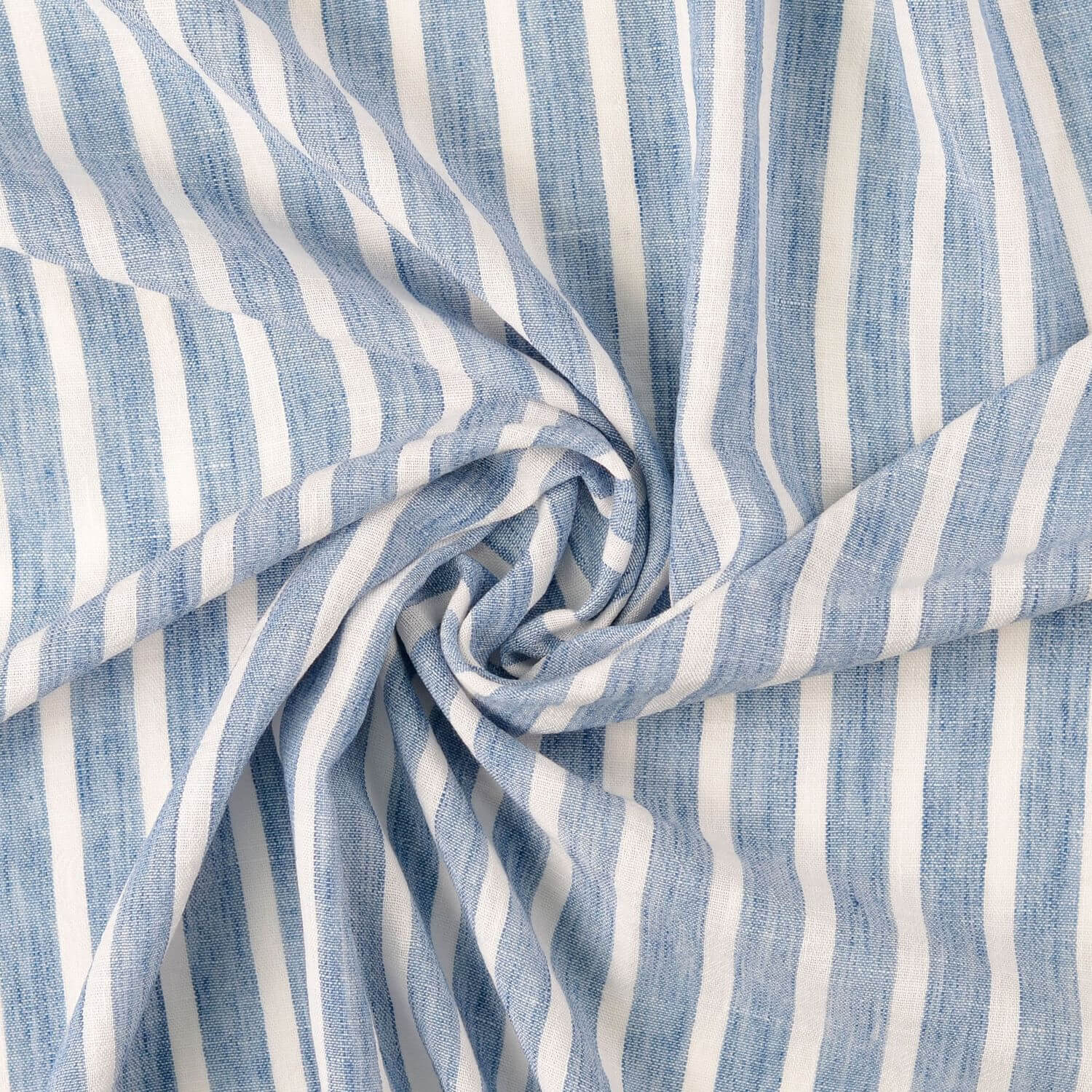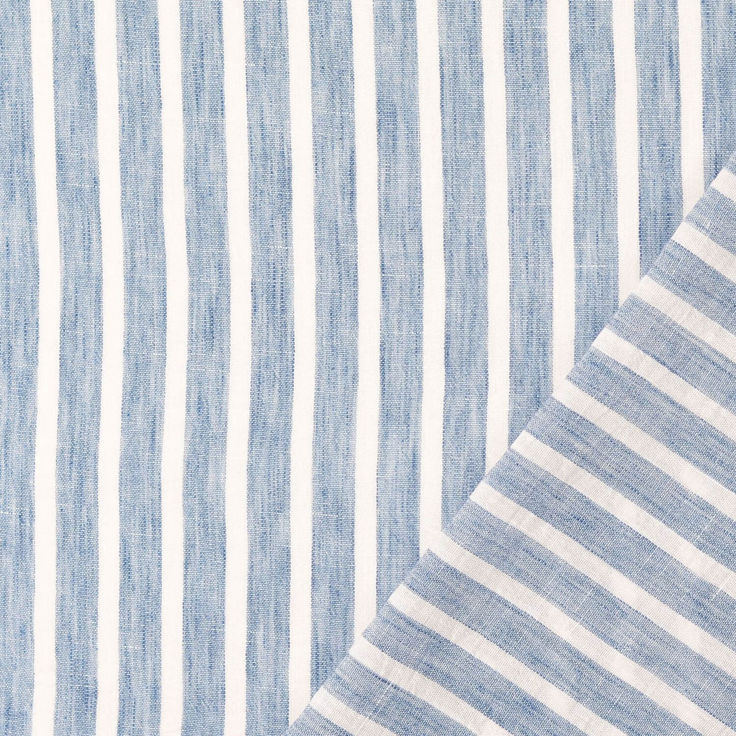 Leve, arejado e maravilhosamente estival: este tecido para blusas e vestidos, que flui suavemente, com um sofisticado aspeto de linho, encanta com riscas finas e longitudinais em azul claro mosqueado. O delicado efeito melange faz com que o azul claro pareça vivo e natural, enquanto a superfície subtilmente texturada faz lembrar os tecidos de linho casuais.