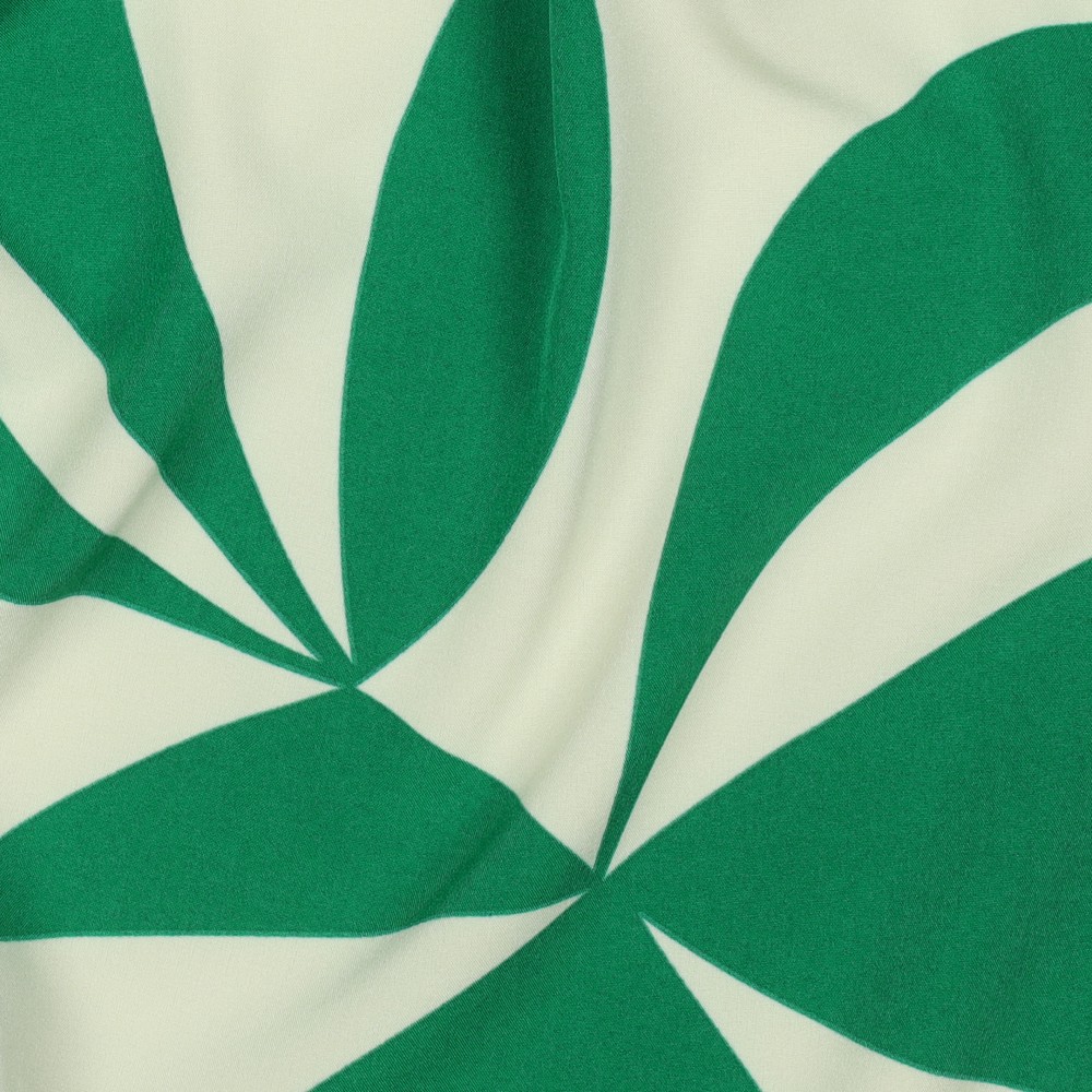 Quer seja para um vestido de verão arejado, uma blusa elegante para o escritório ou uma peça de vestuário vistosa para ocasiões especiais: com este tecido floral XXL em verde e cru, podes costurar o teu novo look favorito num instante.
