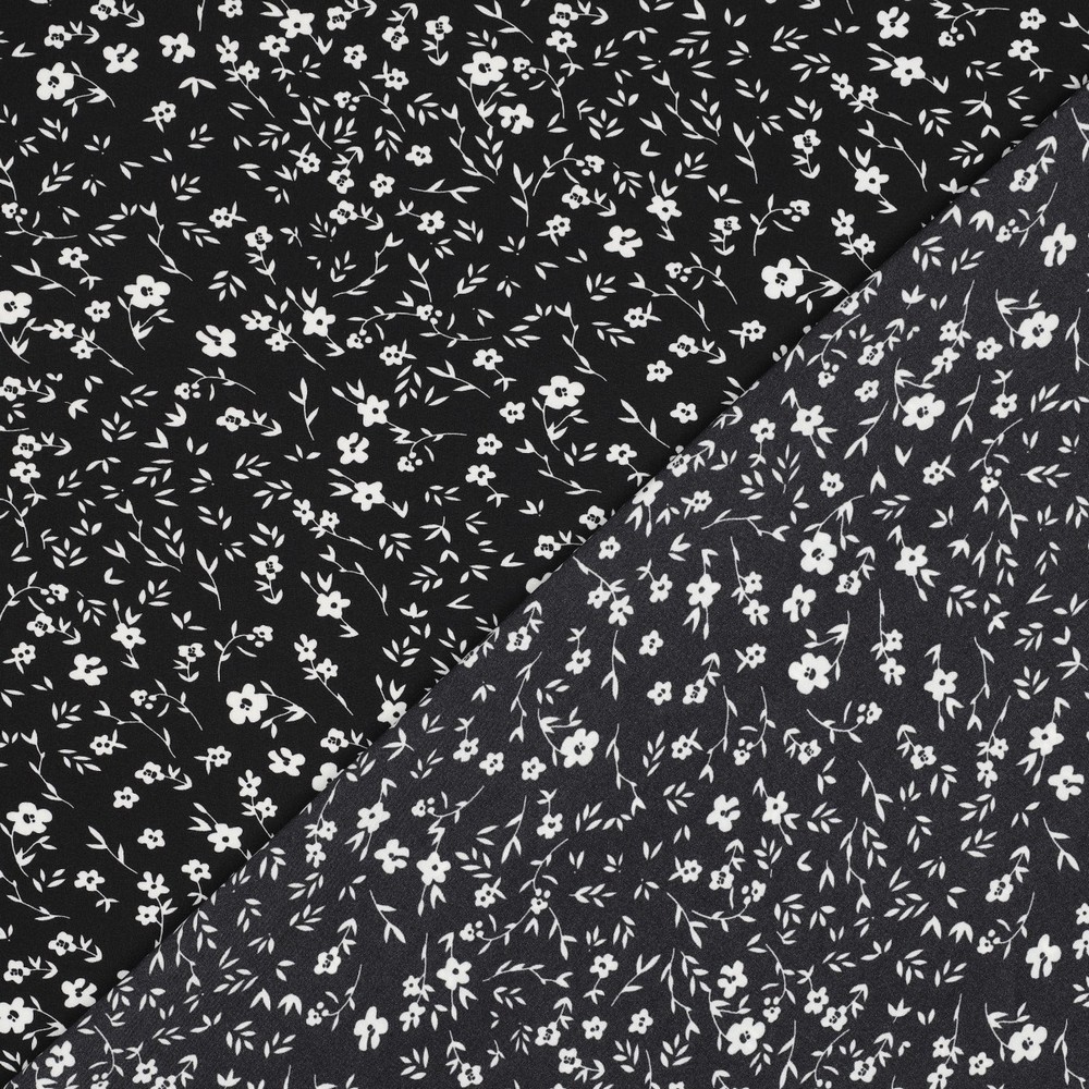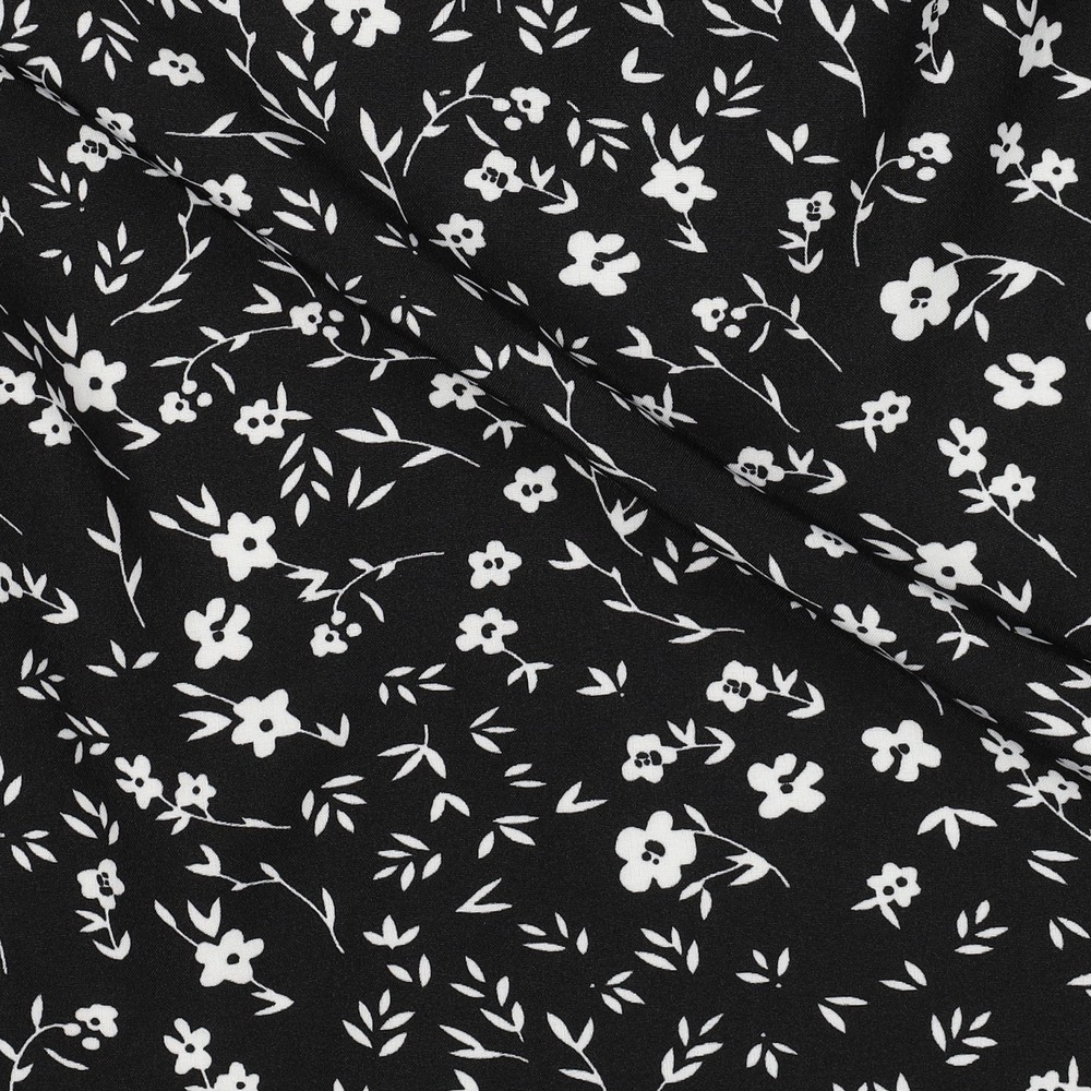 Tecido para blusas e vestidos - flores pequenas stretch preto e branco