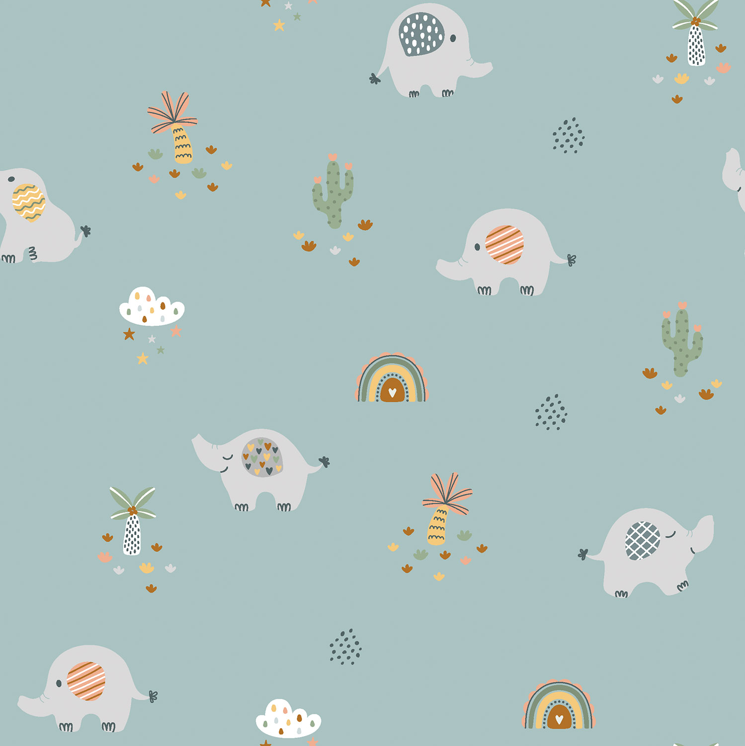 Este tecido para casacos de chuva torna qualquer tempo mau colorido: num fundo suave verde-menta, divertem-se elefantes alegres, pequenos pássaros e folhas delicadas – cuidadosamente desenhados em impressão digital. A combinação harmoniosa de cores verde-menta, cinza, branco e finos detalhes é moderna, infantil e ao mesmo tempo elegante.