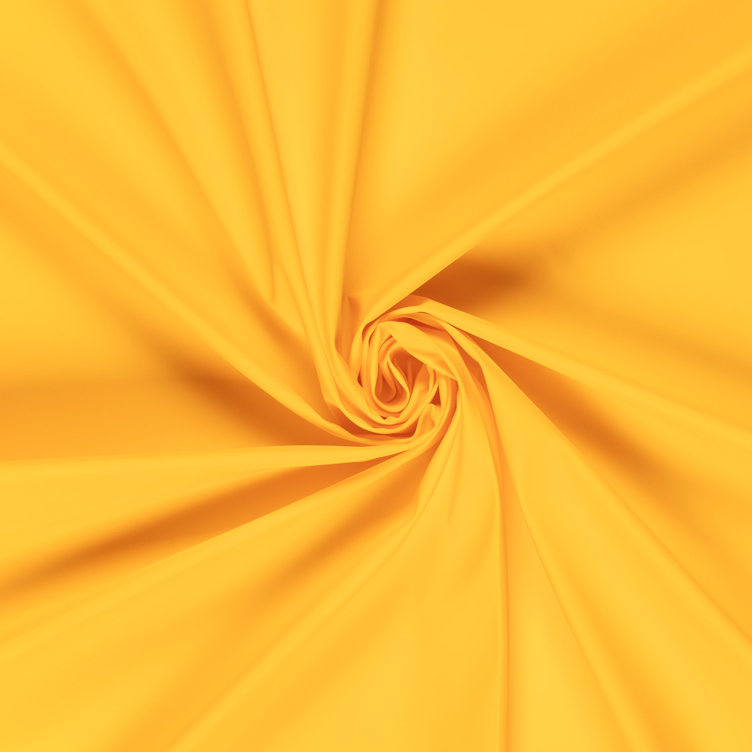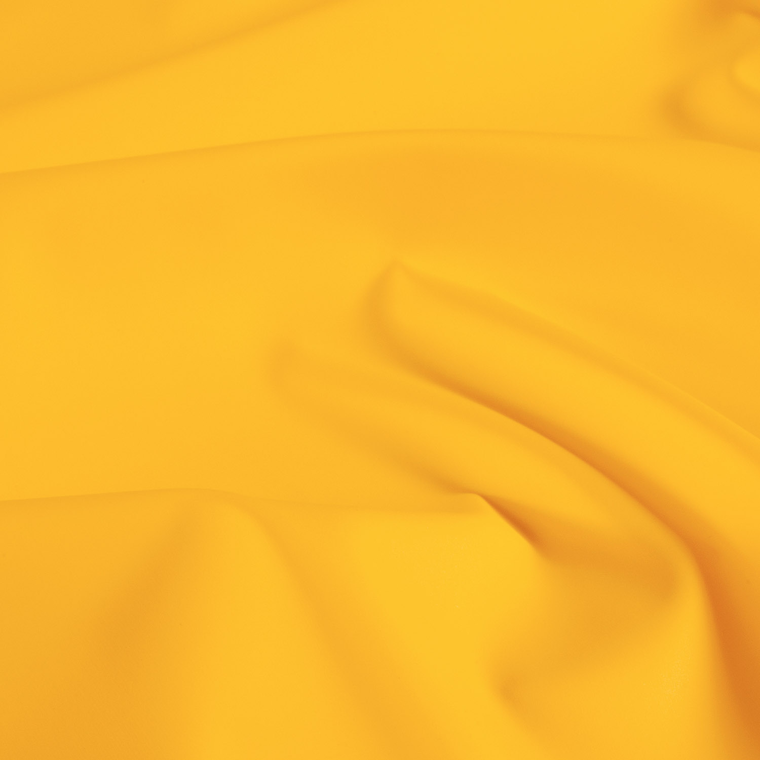 Tão radiante como um raio de sol num dia de chuva: o nosso tecido para impermeáveis em amarelo vivo dá cor ao tempo cinzento e chuvoso. A superfície lisa e ligeiramente brilhante permite que as gotas de água saiam simplesmente e dá aos casacos, blusões, capas ou ponchos de chuva um aspeto moderno e limpo.