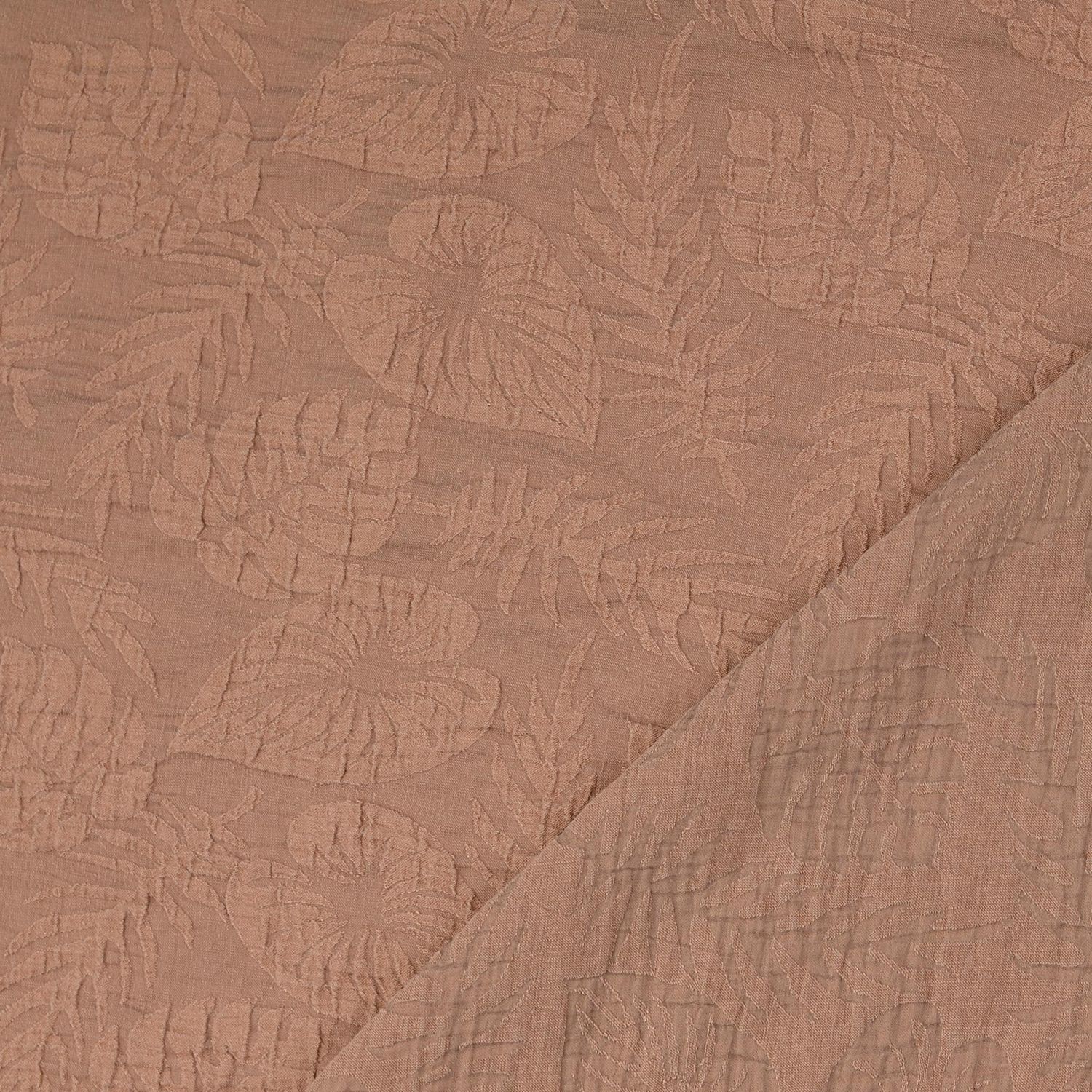 Tecido para vestidos e blusas – Jacquard folhas Taupe