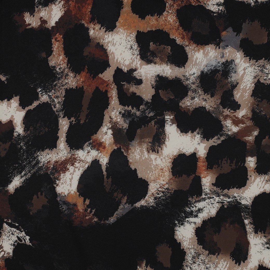 O fino tecido de poliéster com percentagem de elastano tem um caimento suave, é agradavelmente leve e pouco amarrotado. Graças à elasticidade, é confortável de usar e acompanha bem os teus movimentos. A superfície estampada apresenta um marcante padrão de leopardo em tons de preto e castanho, ideal para visuais chamativos, mas adequados ao dia a dia.