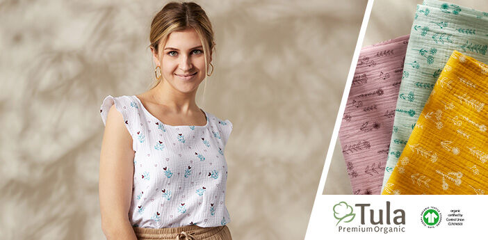 O conforto é conciliável com o estilo! A nova coleção Tula apresenta a musselina de alta qualidade com certificação GOTS, subtis padrões primaveris e tecidos unicolores a condizer. Com a musselina pode costurar écharpes, maravilhosos vestidos, saias, vestuário de criança e muito mais! Deixe-se inspirar pelas nossas propostas.