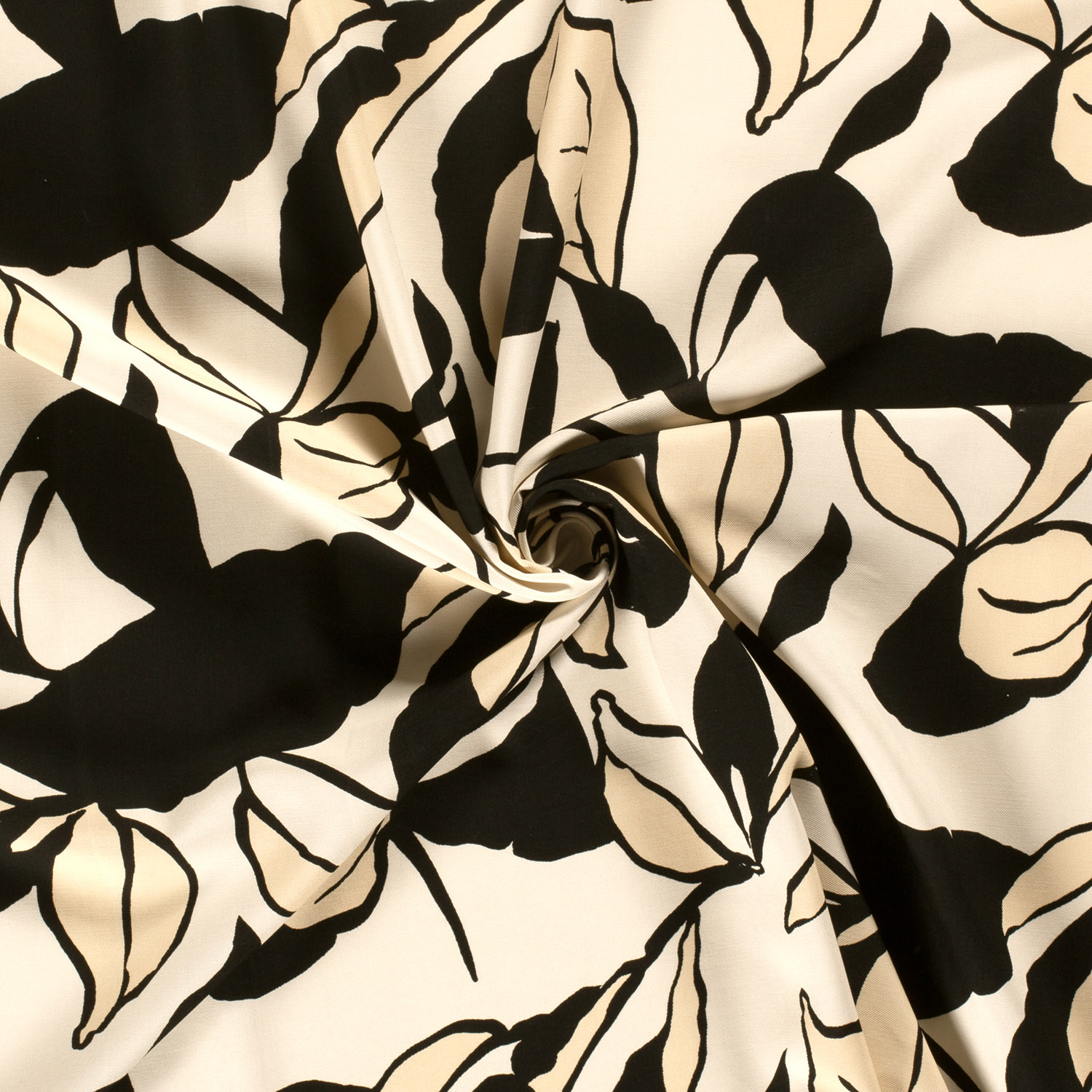 Viscose - Twill Stone washed Grandes folhas Ecru